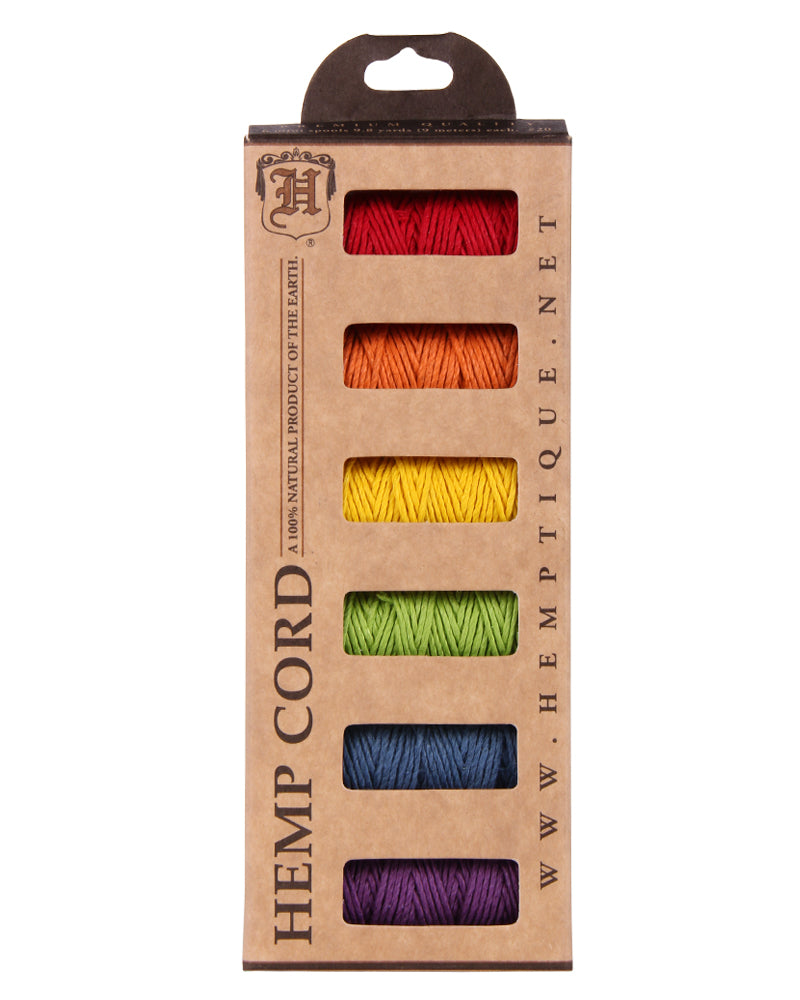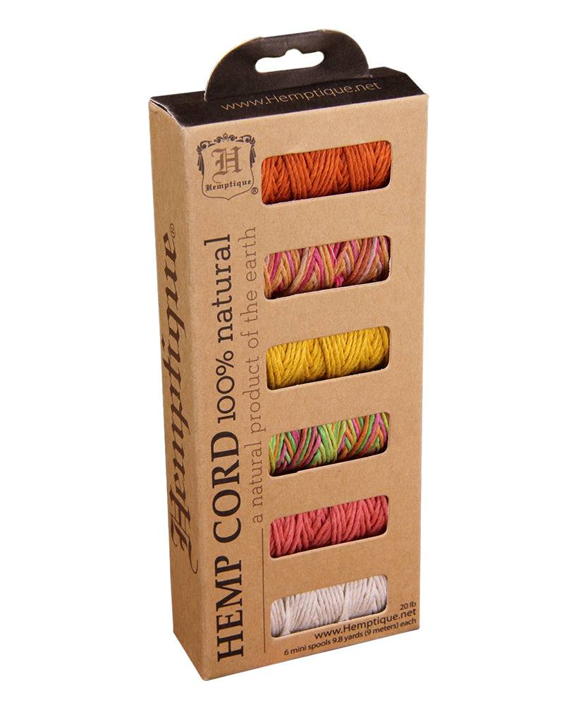 These beautifully packaged Hemp Cord Mini-Spool sets are great for making macramé jewelry, scrapbooking, handmade cards, gift tags and more! Each set contain 6 color coordinated #20 mini-spools.
