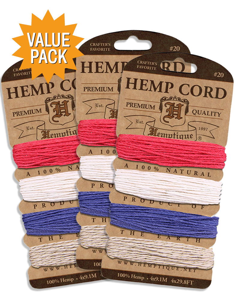 Get 3 #20 Hemp Cord Cards of the same color for $12.35